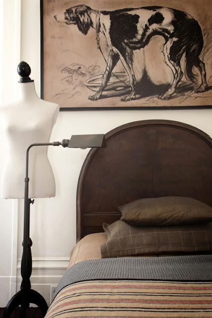I would love for the room to look like something you'd find in a cabin on a lake. A tufted headboard and wool blanket add a touch of masculinity to any room: